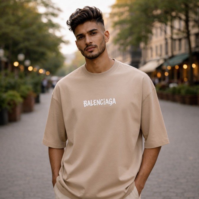 men oversized t-shirt designed for easy everyday wear, this beige graphic tee brings a relaxed look with a modern edge. The oversized silhouette gives you room to move, while the soft beige tone and bold print make it simple to style for casual outings, travel, or outdoor plans.
